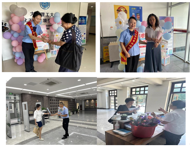 9月8日,社会化服务管理办公室和物业公司人员已在各楼宇完成布置,老师们进入楼宇,工作人员诚意满满向老师们送上诚挚祝福和节日小礼物,感谢老师们辛勤为学校建设发展和学生成长成才做出的贡献。