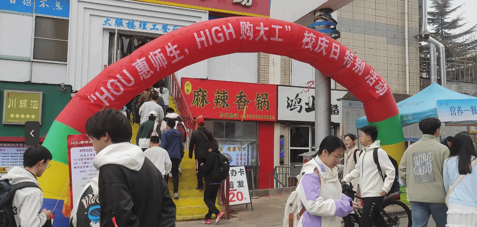 为庆祝大连理工大学建校75周年,4月13至15日后勤处精心策划了 “HOU惠师生、HIGH购大工”主题购物节。此次活动既为师生们带来了优惠连连的购物体验,也成为了助力“幸福大工”工程的生动场景。