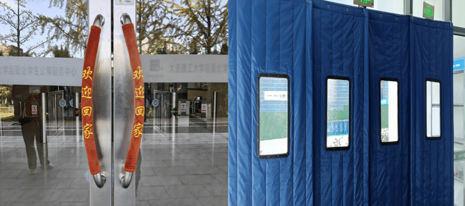 学生公寓中心已陆续进行公寓楼宇门把手保暖套及棉门帘的加装,进一步增强室内保温效果。