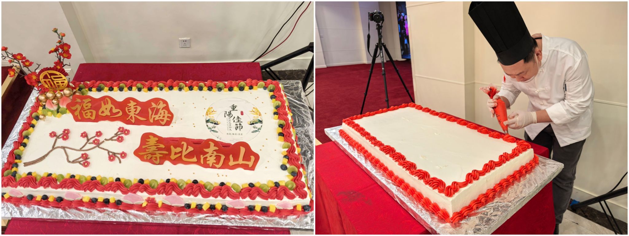 此次重阳节集体祝寿是学校弘扬中华民族尊老敬老的传统美德的重要活动,更体现了后勤处对退休老同志的深切关怀,增强了老同志们的归属感和幸福感,为构建和谐后勤大家庭增添了浓墨重彩的一笔。后勤处饮食服务中心还为该活动精心设计制作了大蛋糕,由中心食堂四楼点心大师专门制作了低糖低油无添加的重阳祝寿九九糕,九型九味,寓意好、味道佳,是后勤人为保新鲜连续几天加班到晚九点而献给全校离退休老同志们的心意。